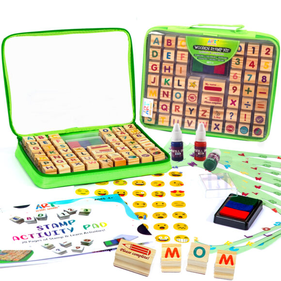 Sale Add to WishlistBrowse WishlistBrowse WishlistAdd to cart Toys & Games Large Wooden Stamp Premium Set for Kids. 72 Pcs Alphabet Stamps. Letters, Numbers, Emojis, 3-Color Washable Ink Pad, 3 Refill Bottles, Activity Book. Ideal Creativity Kit for back to school $35.00 $26.99 Rating 4.7 out of 5